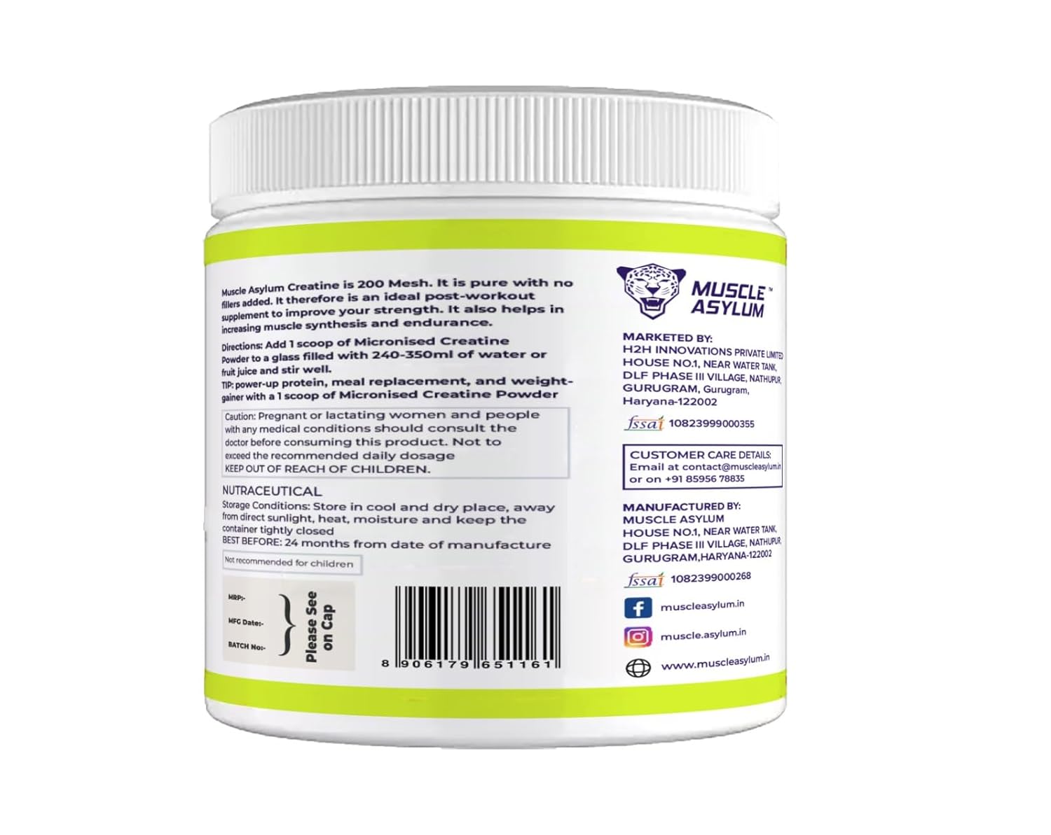 PURE CREATINE: 100% Pure Micronized Creatine Monohydrate. Certified Vegan, Non-GMO, Soy Free and Gluten Free. Enhance energy production, promote muscle growth, and improve physical performance with Muscle Asylum Creatine Monohydrate.