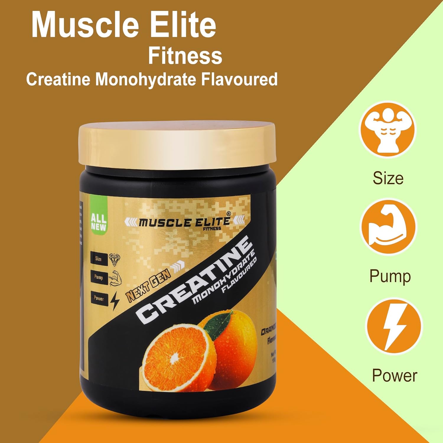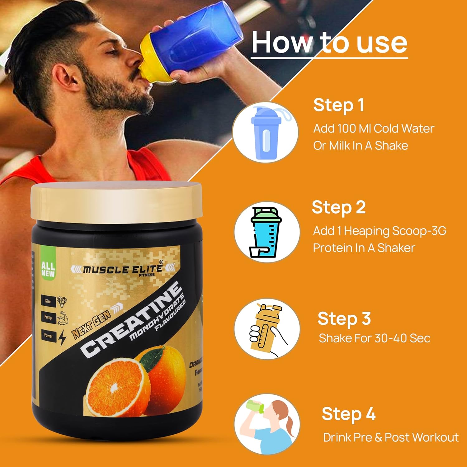 Muscle Elite Fitness Creatine Monohydrate Powder | Supplement For Lean Muscle Growth Energy Supplement for Workout | New Generation Gym Supplement for Men & Women [50 Servings, Orange]