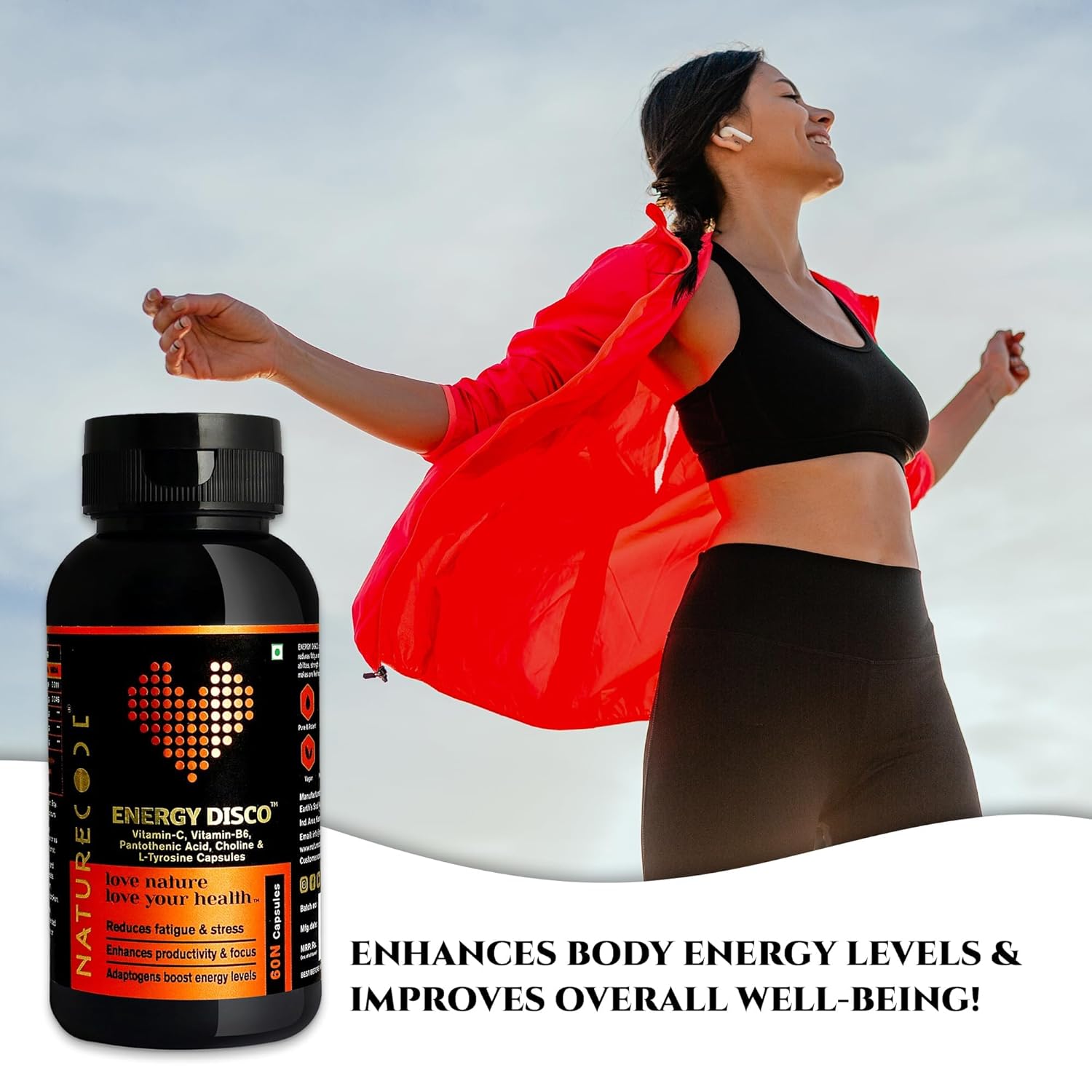 Nature Code Energy Disco Capsules | Herbal Extracts with Vitamin C & B6 | Boosts Energy, Strength & Stamina | Supports Focus & Stress Relief | FSSAI Approved | 60 Veg Capsules