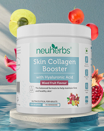 Neuherbs Collagen Booster Powder improves skin elasticity by replenishing collagen, a key protein for firmness and hydration.