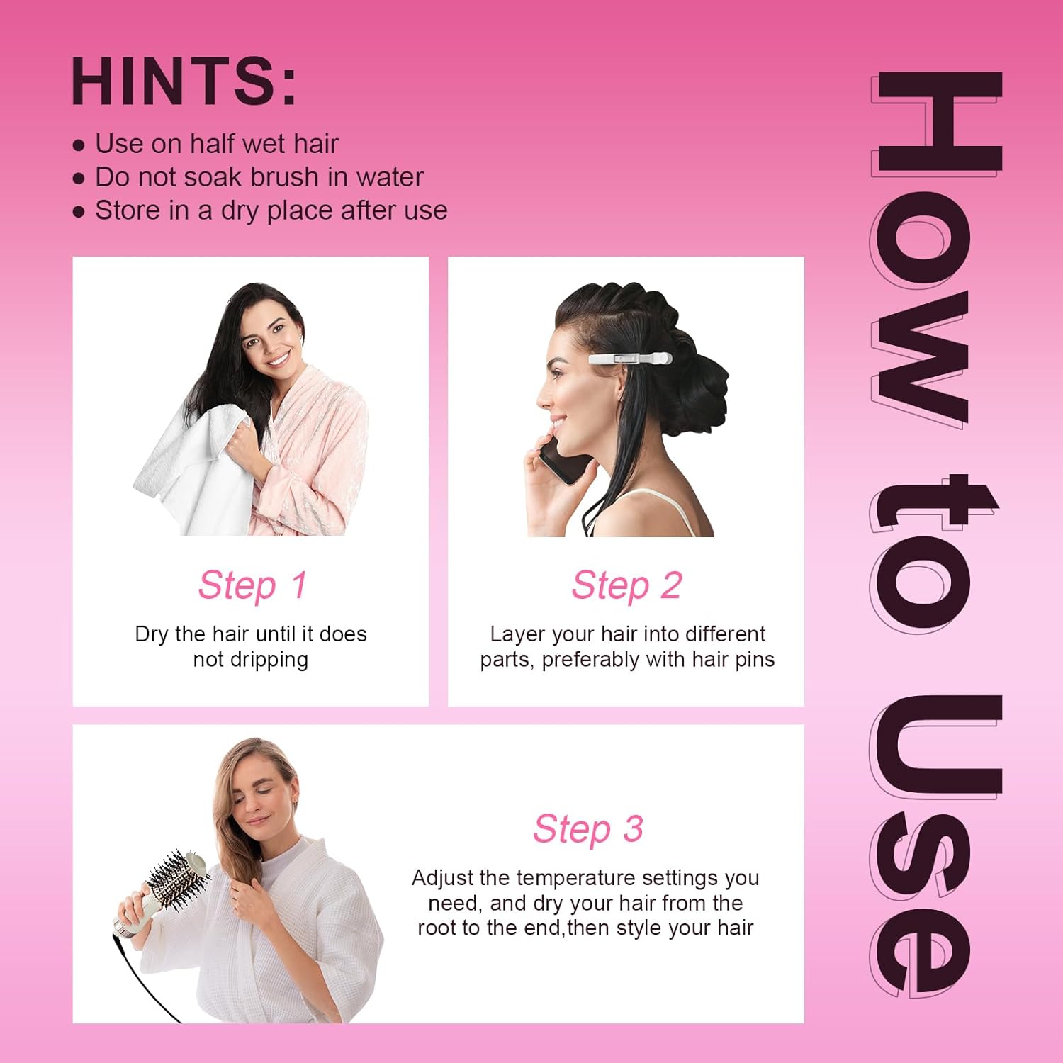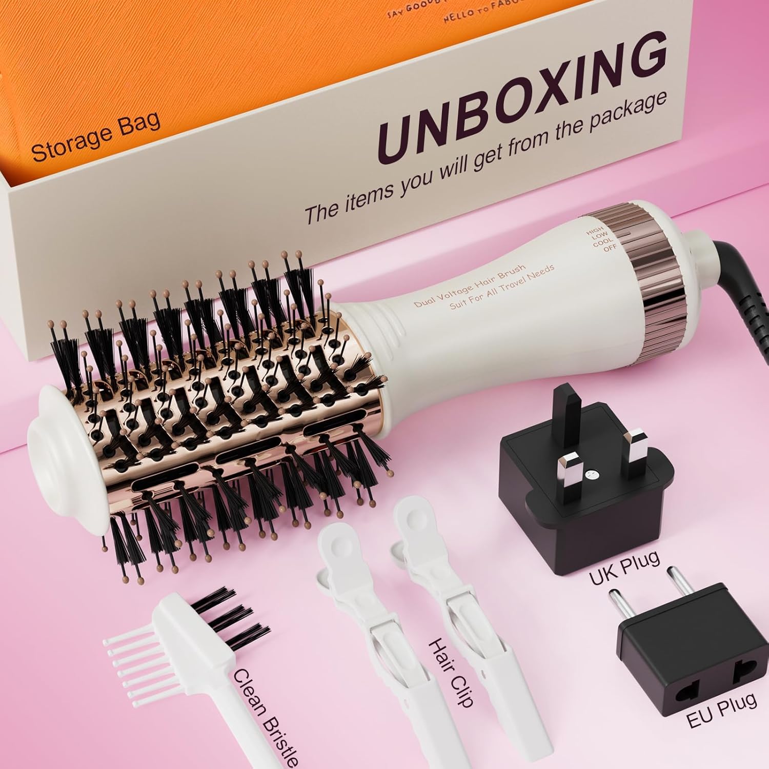 Included Components : Hair Clip, Hot Air Brush, EU&UK Plug, Storage Case