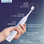 ORACURA® Sonic Smart Electric Rechargeable Toothbrush SB300 | Blue | 4 Vibrant Colors| 36,000 strokes/min| With 5 Modes & 3 Intensity Levels| IPX7 Waterproof| 2 Minutes Auto-Timer| 90 Days Battery