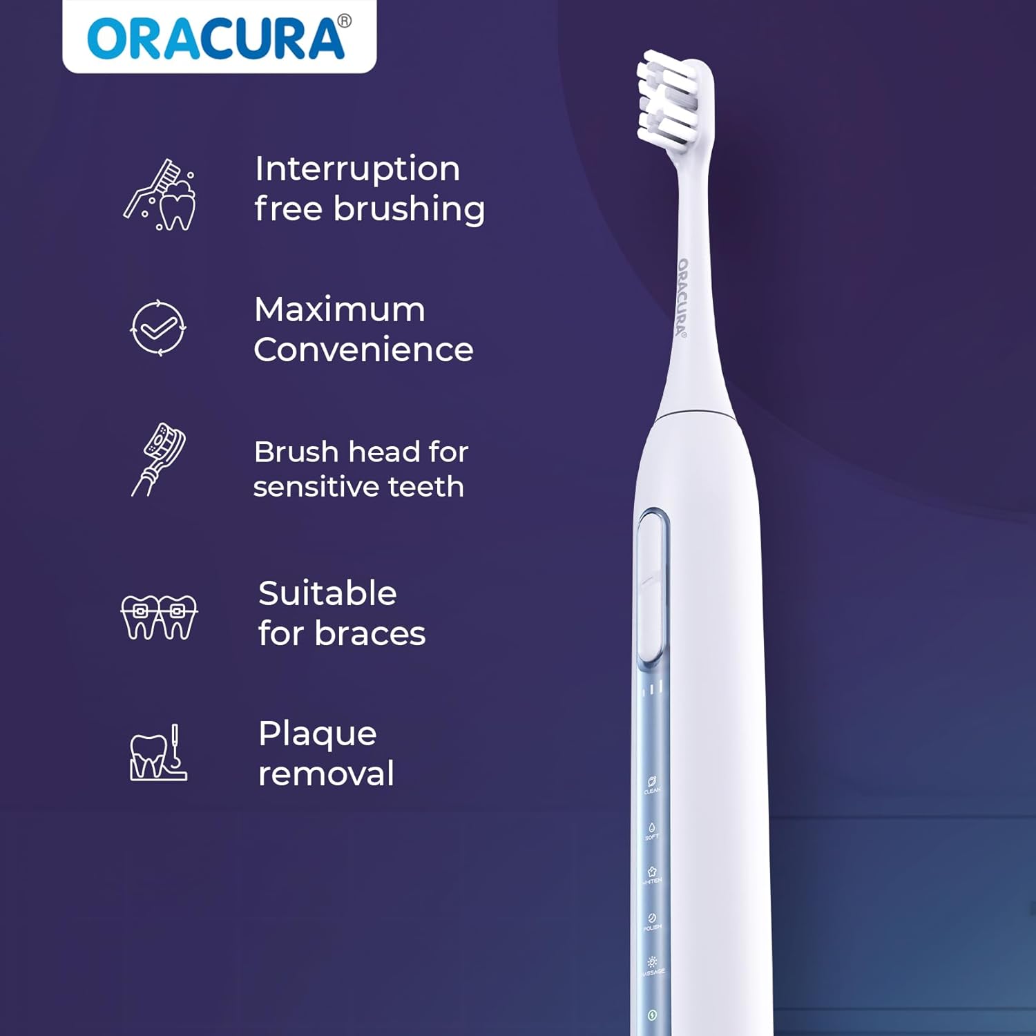 ORACURA® Sonic Smart Electric Rechargeable Toothbrush SB300 | Blue | 4 Vibrant Colors| 36,000 strokes/min| With 5 Modes & 3 Intensity Levels| IPX7 Waterproof| 2 Minutes Auto-Timer| 90 Days Battery