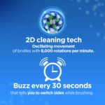 2D Cleaning Action, oscillates and rotates to remove plaque better than a regular manual toothbrush