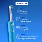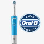 Experience Oral-B VITALITY 100 Blue from the #1 brand recommended by dentists worldwide. The VITALITY100 Blue electric toothbrush helps you brush like your dentist recommends for 2 minutes with the professional timer, and notifies you every 30 seconds to change the area you are brushing. While you are moving the brush around your mouth, the Cross Action toothbrush head surrounds each tooth with bristles angled at 16 degrees, and 2D cleaning action oscillates and rotates for better plaque removal than a regular manual toothbrush Compatible with the following Oral-B toothbrush heads: CrossAction, 3D White, Sensi UltraThin, Sensitive Clean, Precision Clean, FlossAction, TriZone, Dual Clean, Power Tip, Ortho Care.