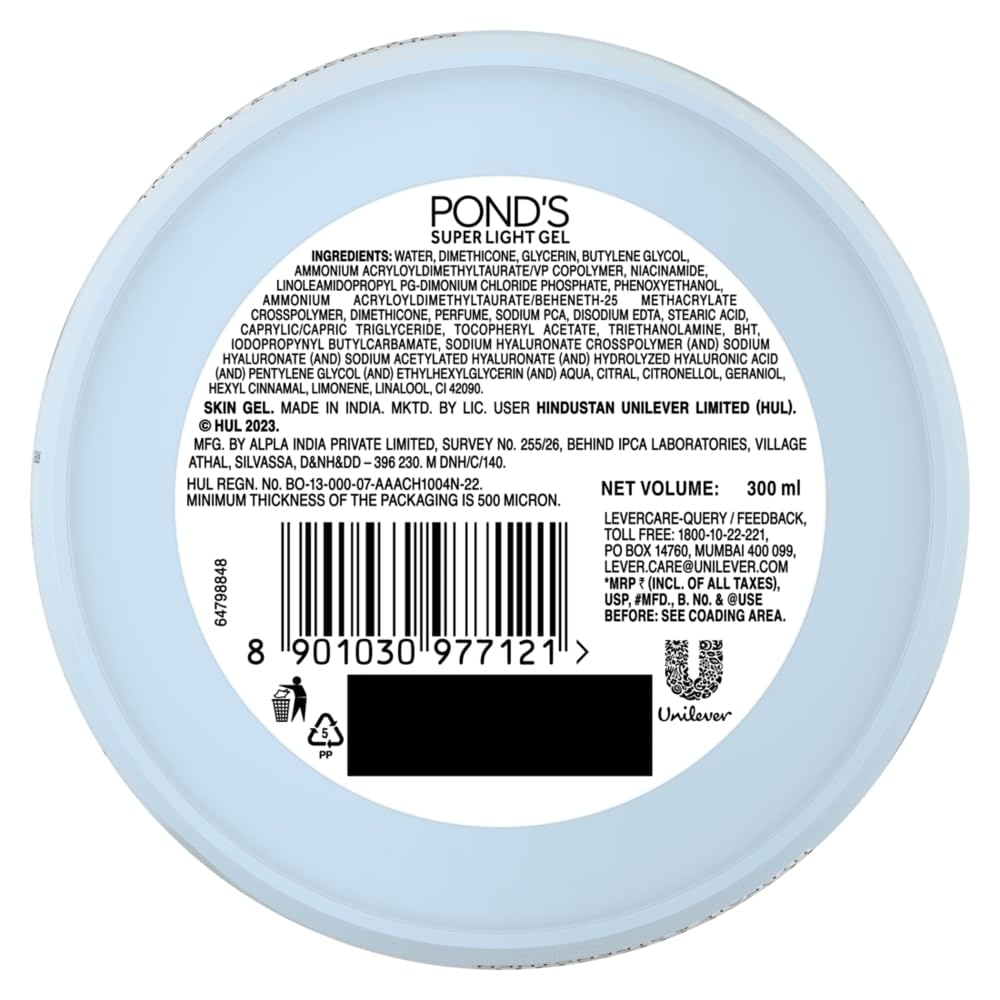 POND’S Super Light Gel Oil Free Face Moisturizer 300 g | With Hyaluronic Acid & Vitamin E for Fresh Glowing Skin & 48 hr Hydration – Daily Use