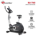 PowerMax Fitness® BU-740 Upright Exercise Bike for Home Use [8Kg Flywheel, Max User Weight 120kg, LCD Display, 10-Level Adjustable Resistance & Anti-slip Pedal] Black colour