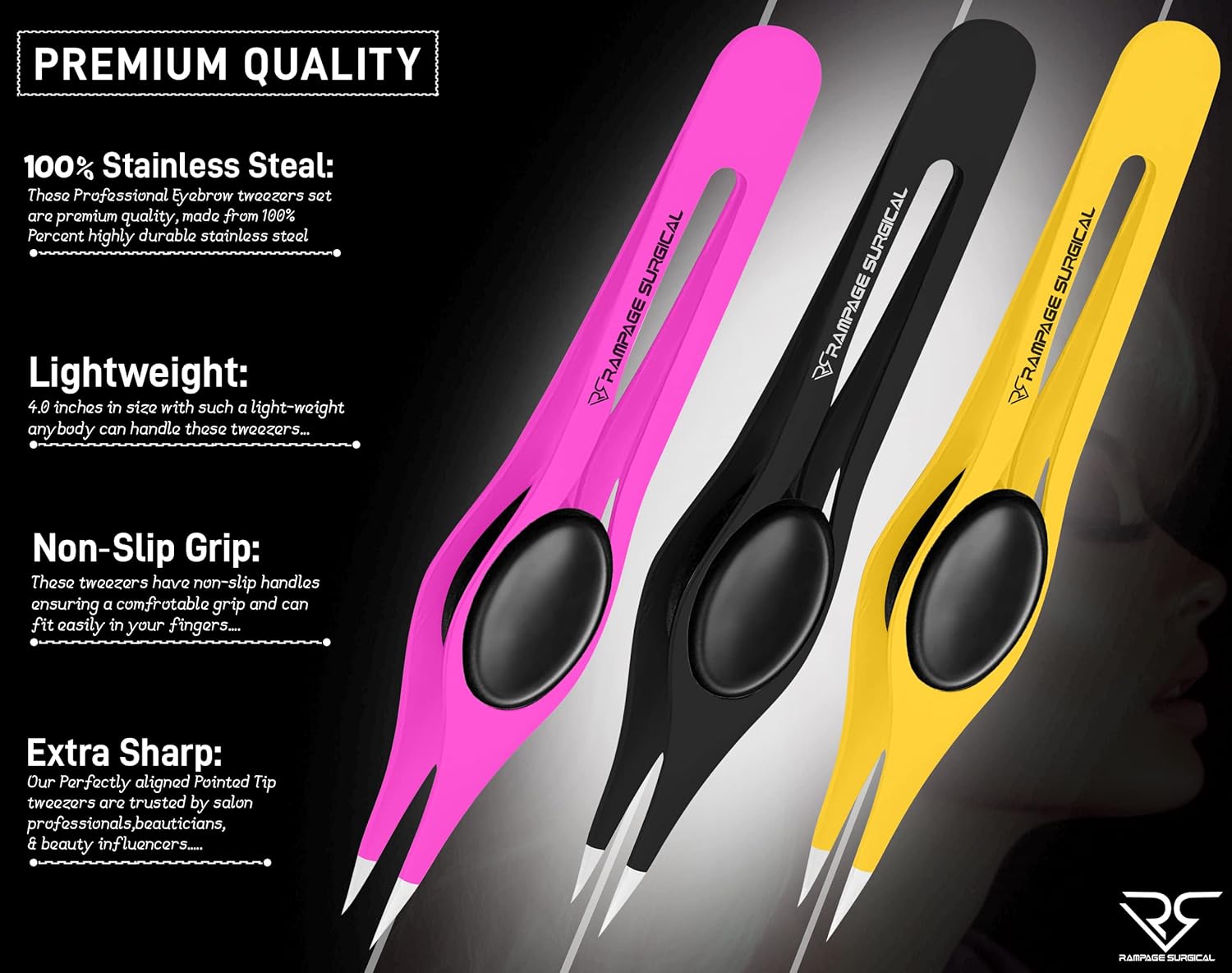 ✔ Professional 2 and 3 Pack Fine Tip Eyebrow Tweezers, Non-Slip Comfort Grip Pointed Tip Tweezer for Plucking, Removing Ingrown Hairs, Facial Hair