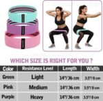 HIGHEST QUALITY – The Hip Resistance exercise bands are made from premium quality sturdy and environmentally friendly cotton polyester elastic fabric materials, It can be used for any type of work out. The resistance bands can stay put for a safe and comfortable workout such as stretch and strengthen hips, legs and thighs. Not only are these fitness resistance bands great for working out at the gym but also for use at home or everywhere else.COMFORTABLE – Each band can be flipped inside-out to be used directly against skin. Thicker width prevents band from rolling up. GET PERFECT PEACH-SHAPED BODY: These versatile exercise bands can compliment with any fitness training designed for glutes, legs & thighs. Ideal for assisting in, CrossFit, Gym, Yoga, Pilates, Cardio, Weight Loss,Body workouts. EFFECTIVE – Three sizes allow you to choose the perfect resistance level for each and every movement. Use the largest band for the least amount of resistance and use the smallest band for the heaviest resistance. LIGHTWEIGHT, PORTABLE: You have freedom to workout anywhere, anytime with the Resistance Band. Be at home, the gym, the office, a hotel, outdoors, while traveling, etc. HIGHLY DURABLE: These Premium Elastic Mini Stretch Bands are highly durable. It can be used by both Men & Women for legs & butts toning exercises. TONE YOUR BODY: The bands work great for such exercises as Hip Band Squats, Hip Thrusts, Abductor and Adductor Exercises, Walking Side/Forward Step, Thighs and Quad Workout, Leg Press & more. Our bands are designed with inner Latex Grip Strips which will prevent sliding Up or down ,allowing you to focus on your workout.No more rolling, no more correcting, no more frustration!