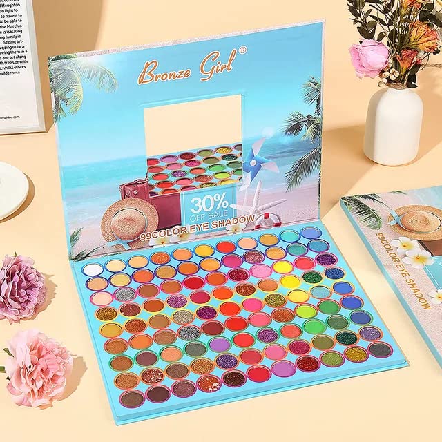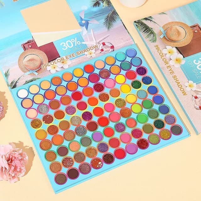 Makeup palette with 99 colors. Includes nude eyeshadow colors and Neutral eyeshadow colors.