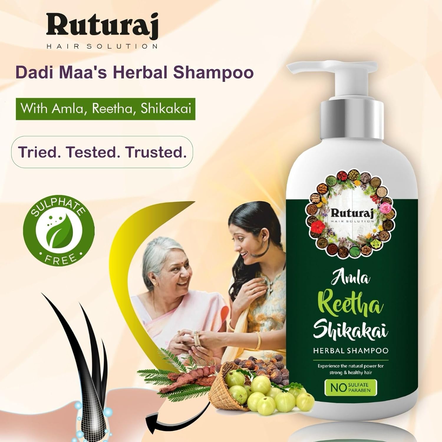 RUTURAJ Herbal Hair Shampoo – Amla, Reetha & Shikakai | Anti-Hair Fall | Strengthens & Thickens Hair | Ayurvedic Formula | 250ml