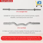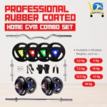 SAFELINE Home Gym Set with Metal Integrated Rubber Plates, 3 Feet Curl & 5 Feet Straight Rod, 1 Pair Steel Dumbbell Rods, Skipping Rope, Gripper & Gym Gloves, Spring Locks (50KG Set)