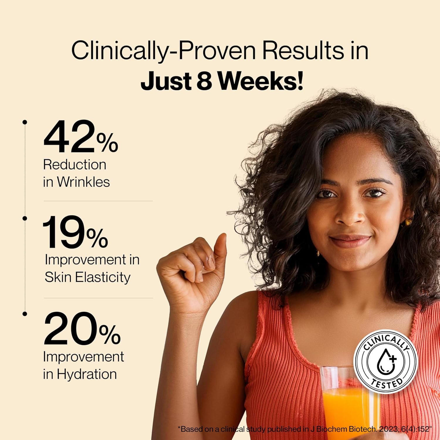 𝗦𝗖𝗜𝗘𝗡𝗖𝗘-𝗕𝗔𝗖𝗞𝗘𝗗 𝗔𝗡𝗧𝗜-𝗔𝗚𝗘𝗜𝗡𝗚 𝗙𝗢𝗥𝗠𝗨𝗟𝗔: Our peach mango marine collagen powder features AQUACOL, a patented blend with Type I and Type III hydrolyzed collagen peptides from fish scales. It is scientifically proven to offer a 42% reduction in wrinkles in just 8 weeks* and boost skin hydration and smoothness. It also includes hyaluronic acid for hydration, Vitamin C for collagen synthesis, Zinc for skin barrier support, and biotin for moisture retention.