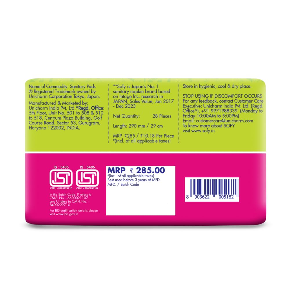 Sofy Anti-Bacteria Sanitary Pads (XL Size – 290 mm) 28 Pads – 6 layer deep absorption & Herbal Shield for Bacterial Protection, Soft on skin with comfy dry top sheet (Pack of 1)
