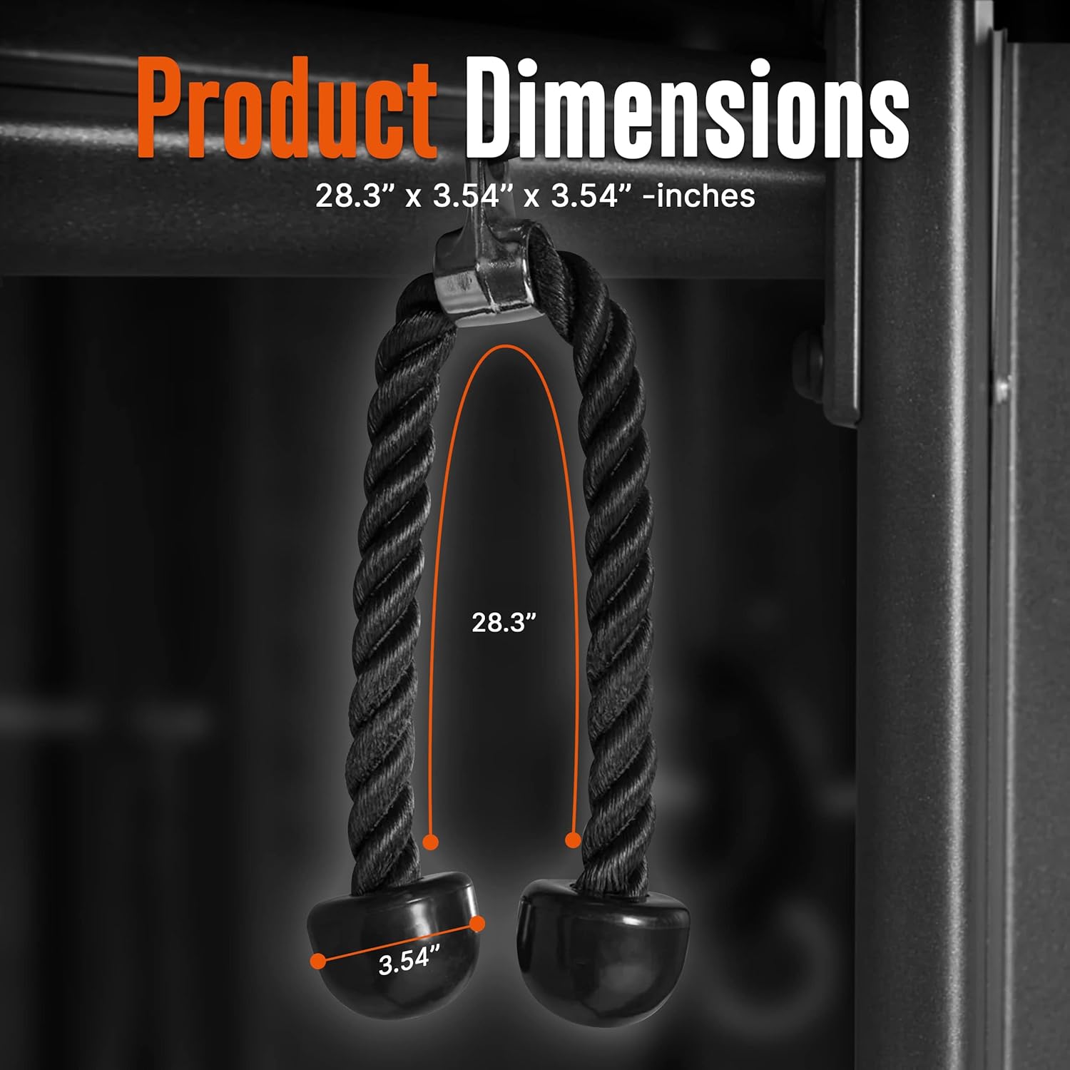 Features: – Heavy Duty Nylon Braided Rope – DIY LAT Pulley System – 27.56-inch Triceps Rope – High-Quality Nylon Braided – With Durable Rubber Ends – Durable Triceps Rope – Non-Slip Rubber Grip – Sturdy Rope Attachment – Develops Triceps, Biceps, Back, Shoulders, and Abs What’s in The Box: – Triceps Rope Attachment Cable Technical Specs: – Construction Materials: Nylon – Weight: 1.5 lbs. – Product Dimensions: 28.3’’ x 3.54’’ x 3.54’’ -inches