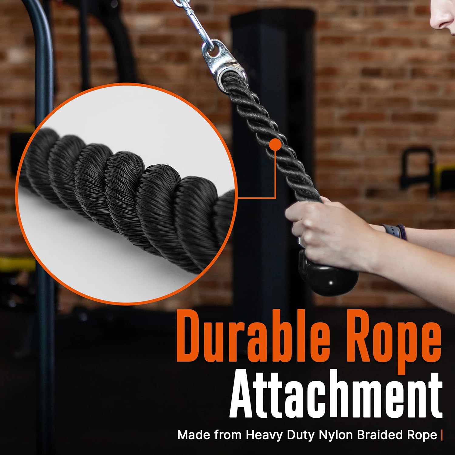MADE WITH DURABLE MATERIALS: Made of high-quality nylon with a stainless steel carabiner clip, the 27.56-inch Triceps Rope Machine Pulldown Heavy Duty Nylon Coated Handle ensures a long service life of safety and durability