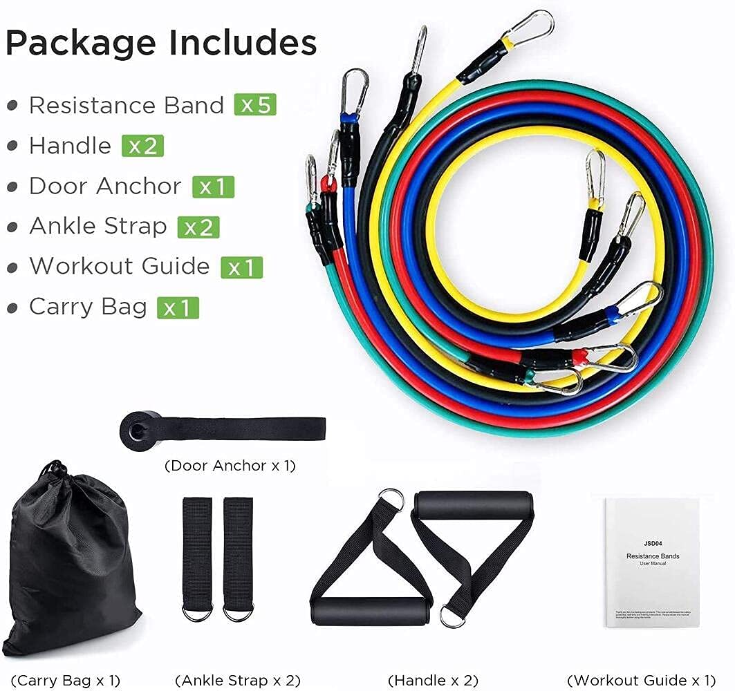 Stavae 11 Piece Gym Power Resistance Band Set for Workout, Resistance Band for Exercise, Resistance Band for Pull ups, tricep, Legs, Rubber Tube with Door Anchor and Hook