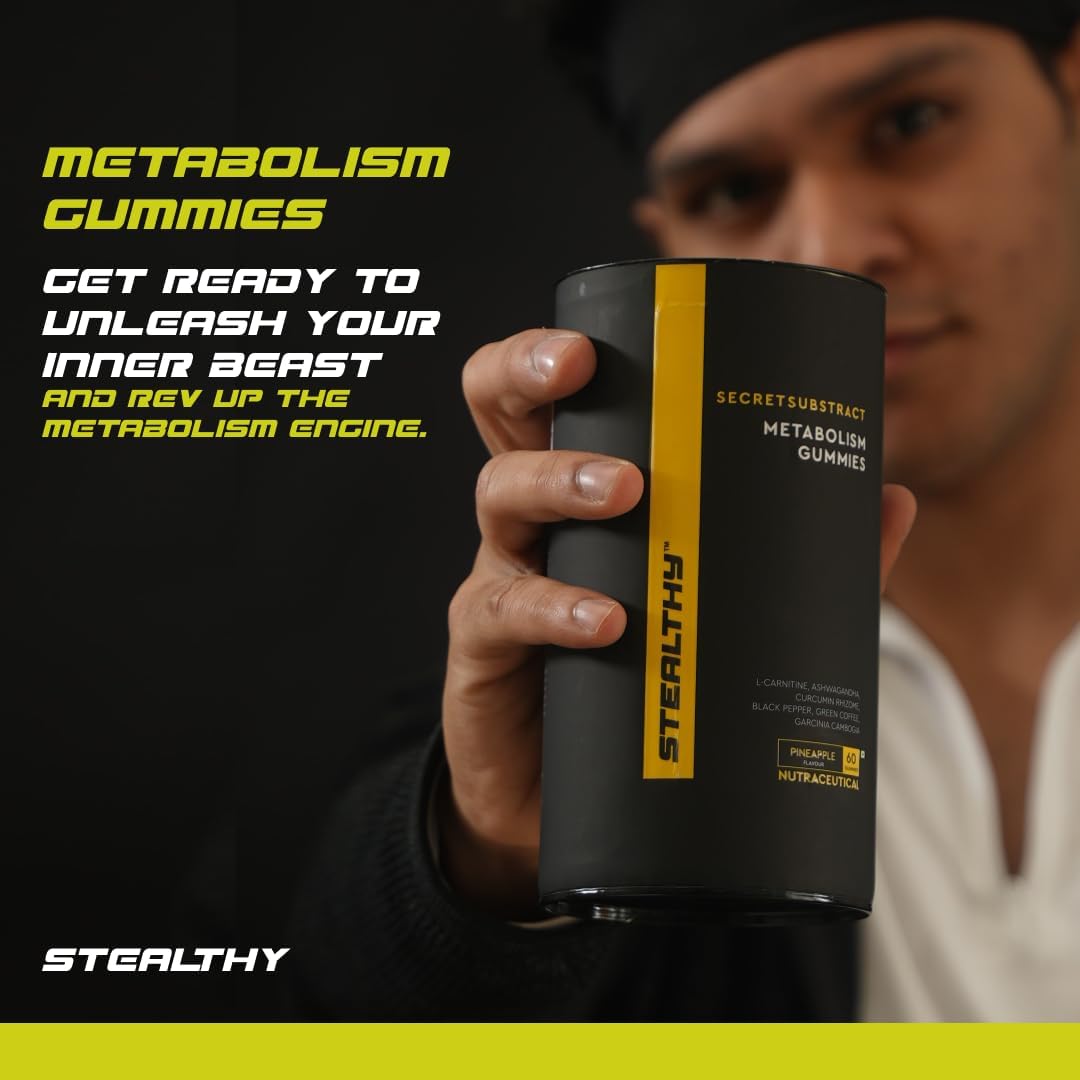 Ingredients: L-Carnitine: 150 mg, Ashwagandha Extract: 100 mg, Curcumin Rhizome Extract: 200 mg, Black Pepper Fruit Extract: 20 mg, Green Coffee Extract: 25 mg & Garcinia Cambogia Extract: 25 mg, Our stealthy gummy are FSSAI & US FDA registered