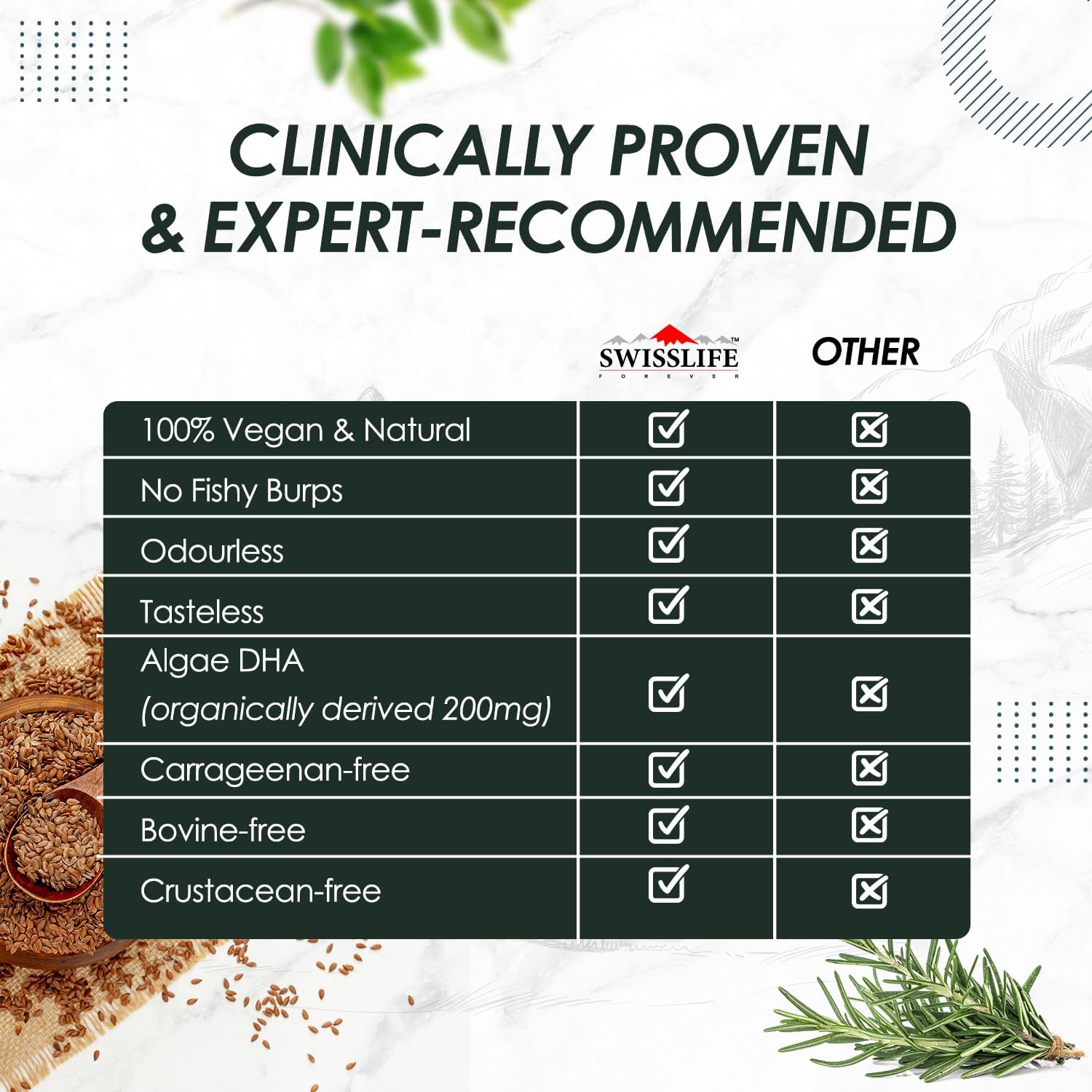 SWISSLIFE FOREVER Plant Based Vegan Omega 3 6 9 with Algal DHA (60 Veg Capsules) | Support Brain Nerve Heart and Immune Health | Healthy Skin for Men And Women, 90 grams