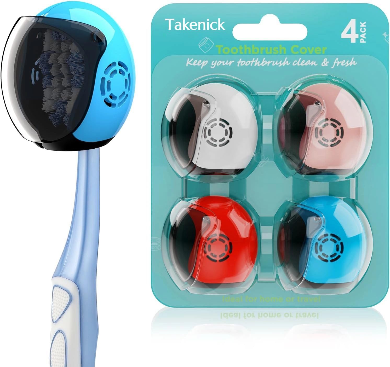 Takenick Helmet Toothbrush Covers Caps, Toothbrush Head Protector for Household Travel, Fits Most Manual and Electric Toothbrushes for Gift, Kids Gift, Birthday Gift (Pack of 4)