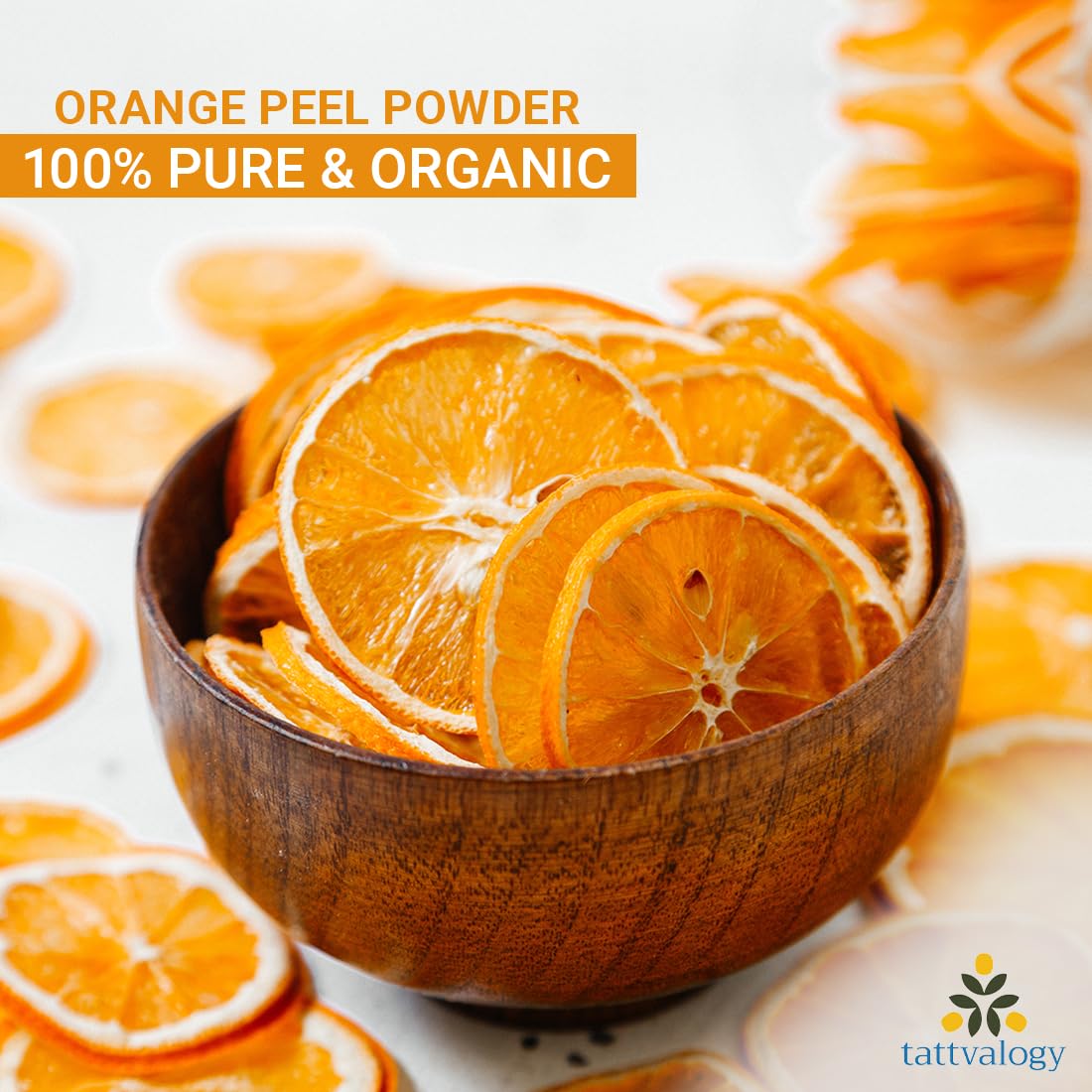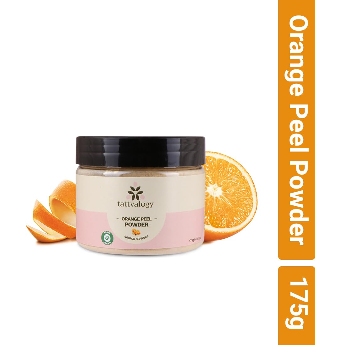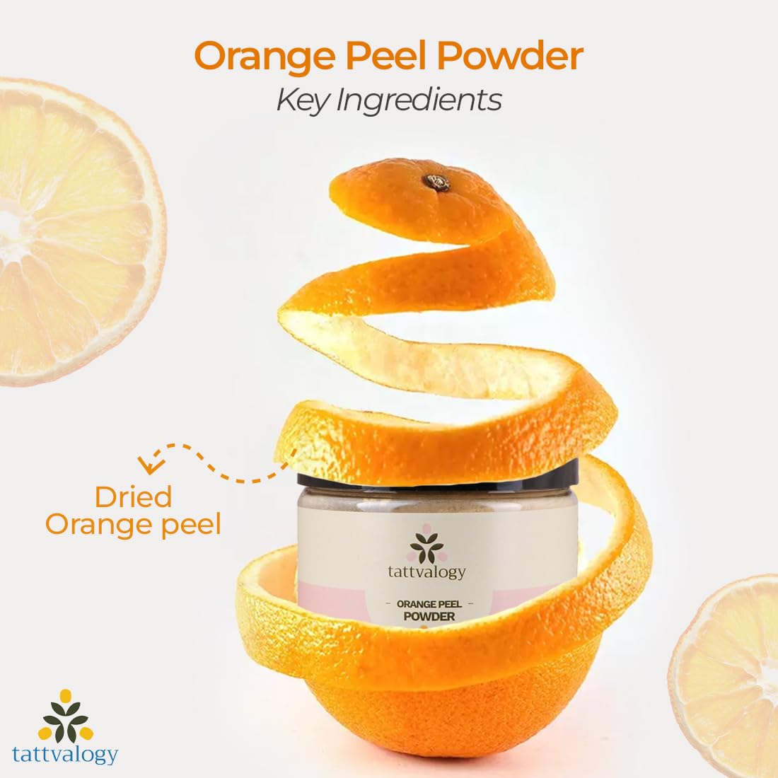 Tattvalogy Orange Peel Powder | Citrus Aurantium | Santra Chilka | 100% Pure & Organic | With Vitamin C | For Hair & Skin Care | Defence From Tan | Chemical Free Face Pack | In Plastic Jar – 175 GM