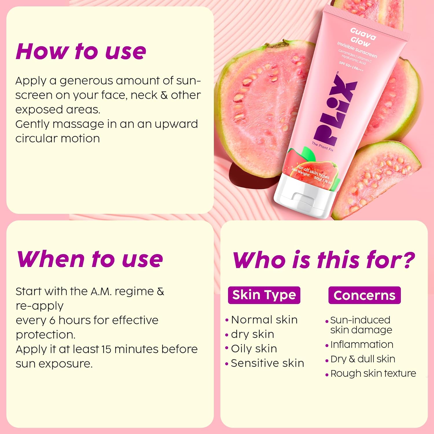 The Plant Fix Plix Vitamin C Guava Skincare Combo, Face Serum, Cleanser & Zero White Cast Sunscreen | For Skin Brightening & Sun Protection | UVA, UVB Shield & Hydration, For Men & Women