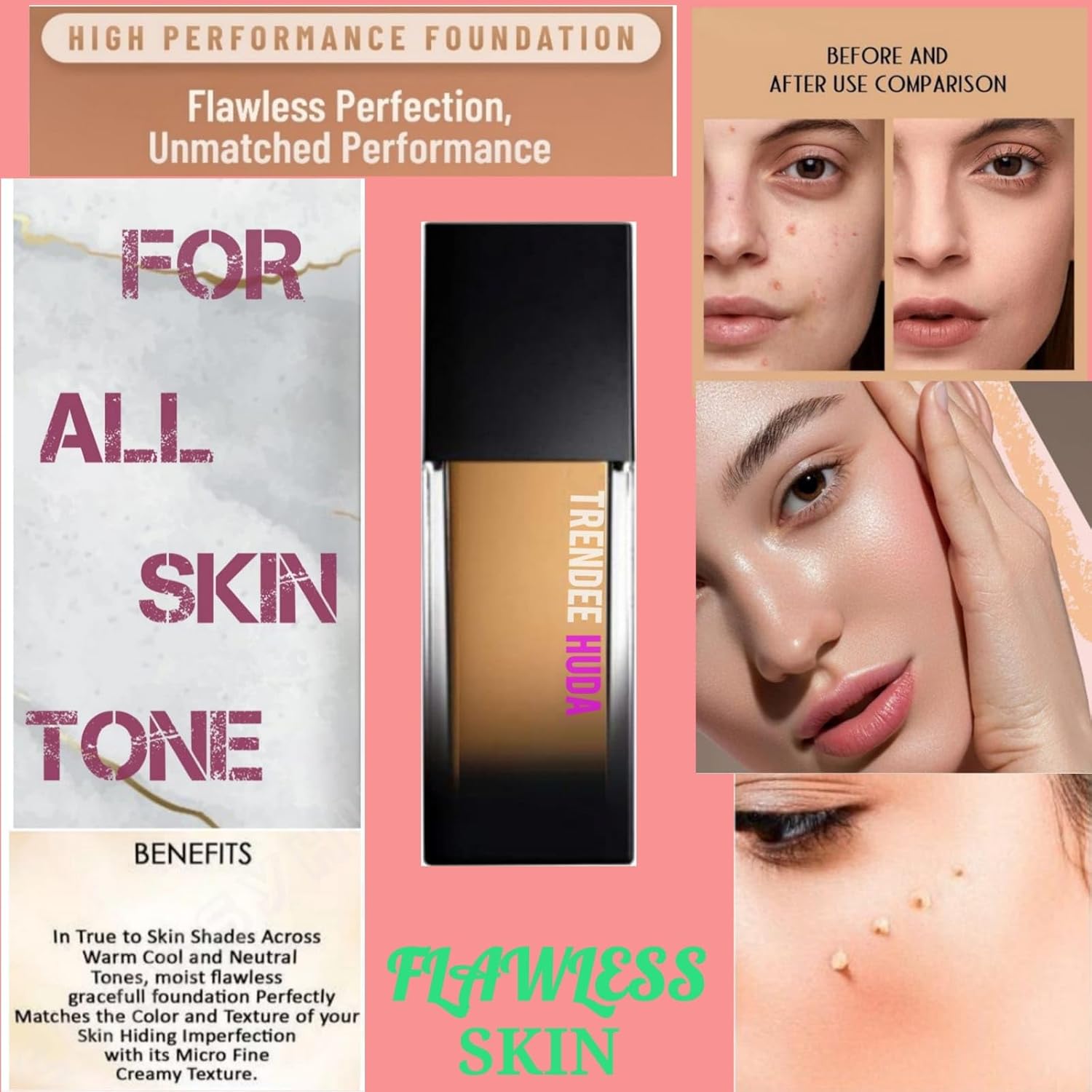 TRENDEE HUDA A Water-Based Water-Resistant Foundation that Provides Long-Lasting Natural Coverage for Face.