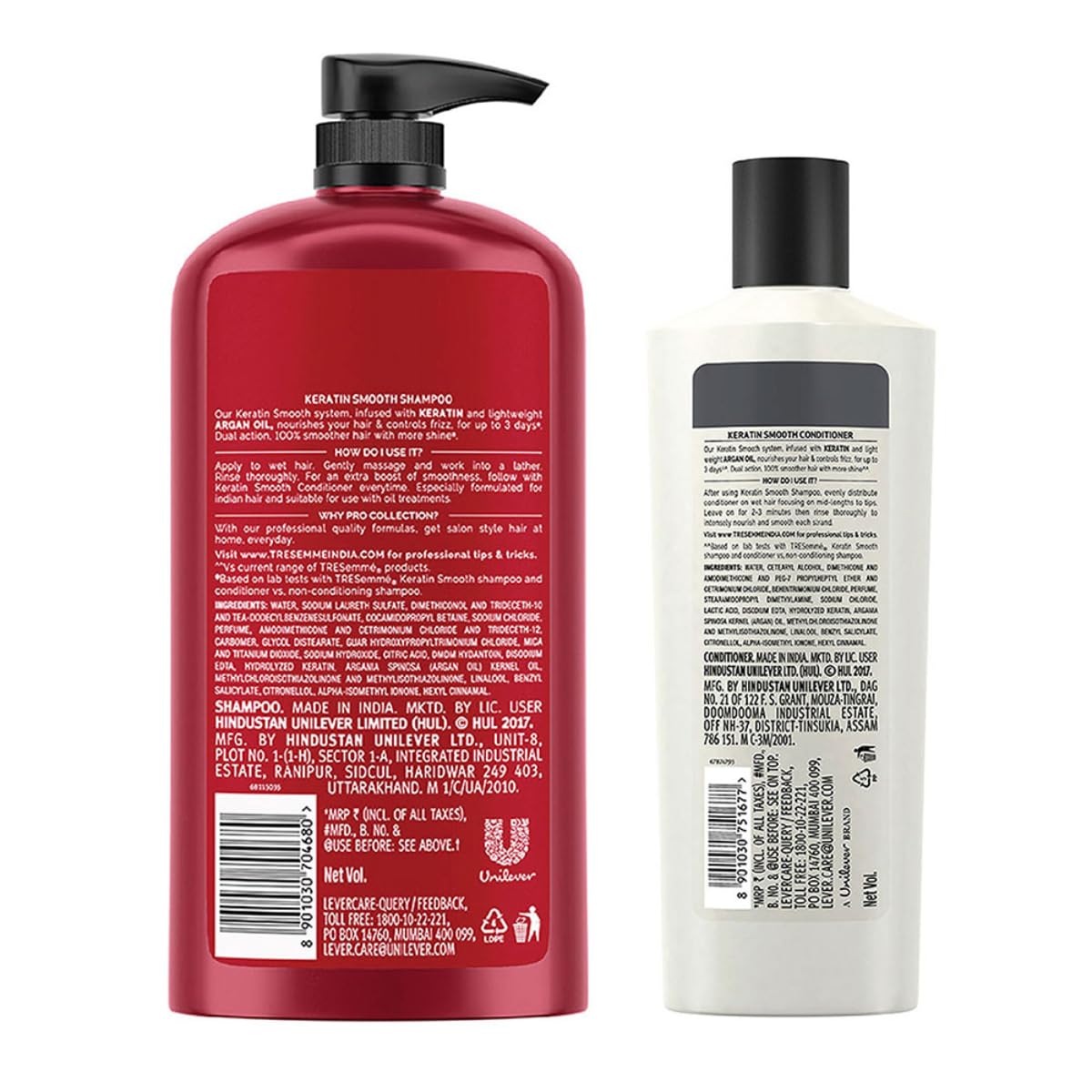 TRESemme Keratin Smooth Shampoo 1 L & Conditioner 335 ml, With Keratin & Argan Oil for Straight, Shiny Hair – Nourishes Dry Hair & Controls Frizz, For Men & Women