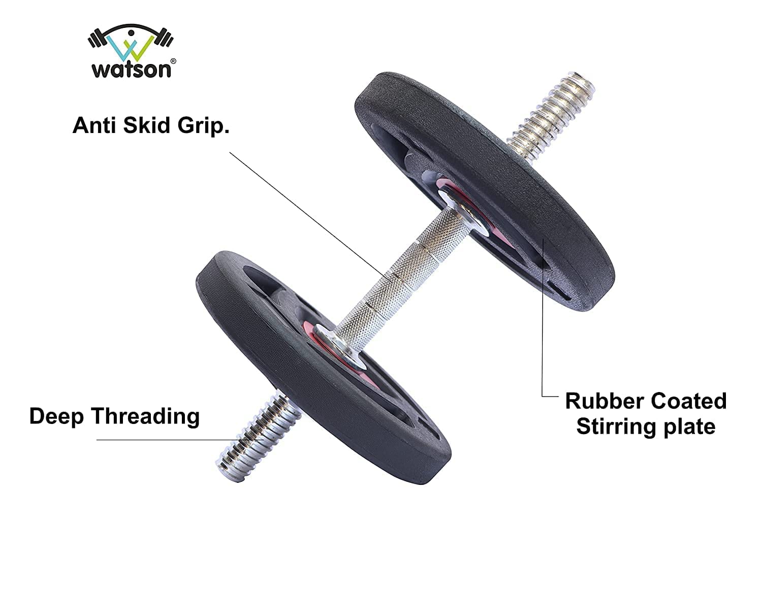 PRODUCT DESCRIPTION-This gym equipment is iron based dumbbell rods. Especially it is best workout kit for men home gym.-Watson gym rubber equipment is convenient and best usage for men, women or adults too.-Complete gym set for home iron coated a rod that gives you more strengthen and power lifting exercises.