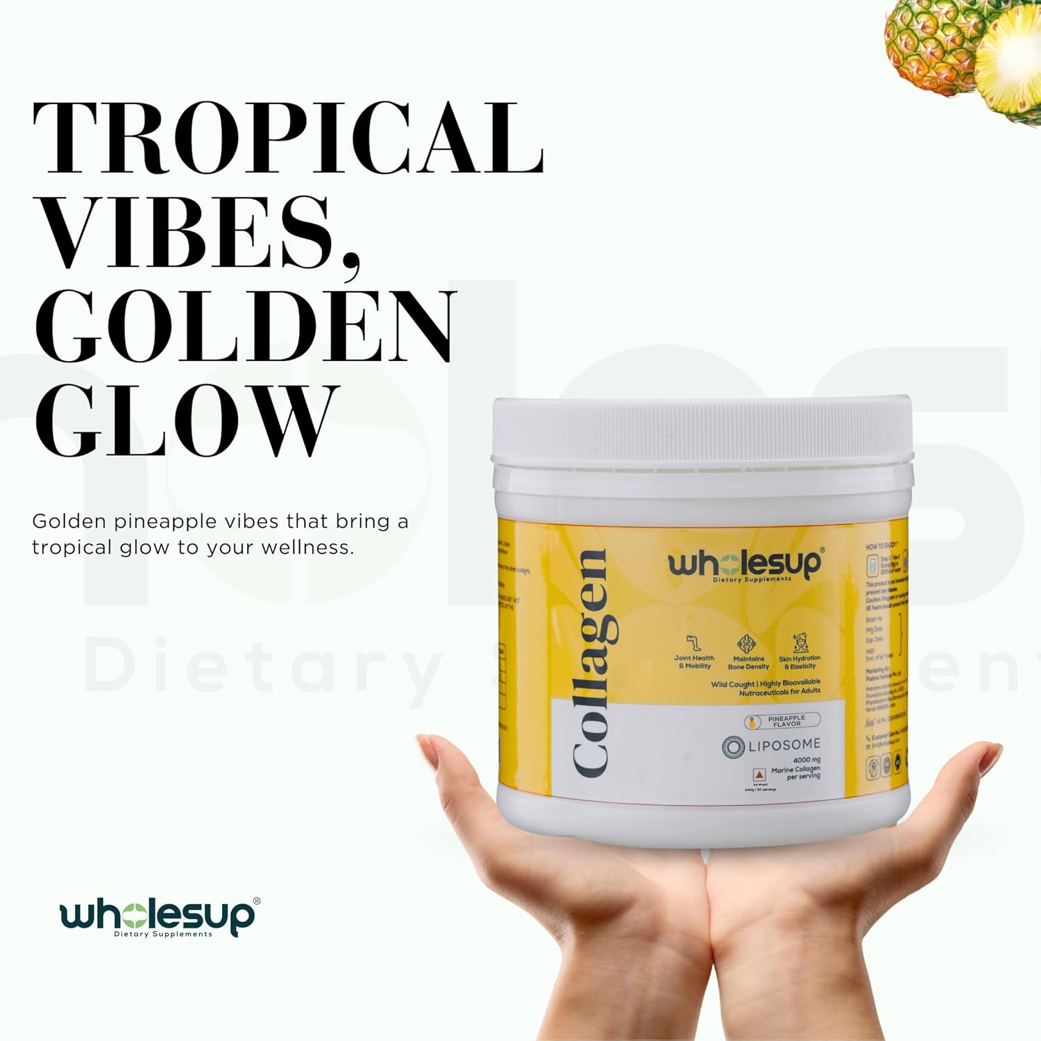 Wholesup Pineapple Flavored Marine Liposome Collagen with Hyaluronic Acid & Vitamin C | 4000mg per Serving | 240g (30 Servings)