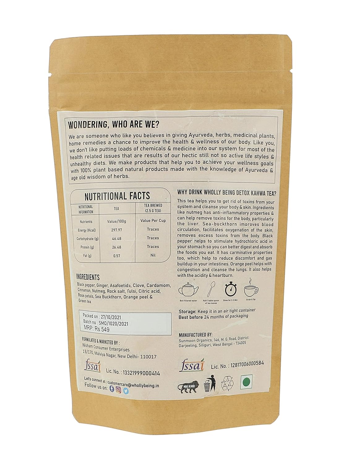 Wholly Being – Detox Kahwa Tea for skin glow and gut detox 100g with nutmeg, sea buckthorn, rose petals, orange peels
