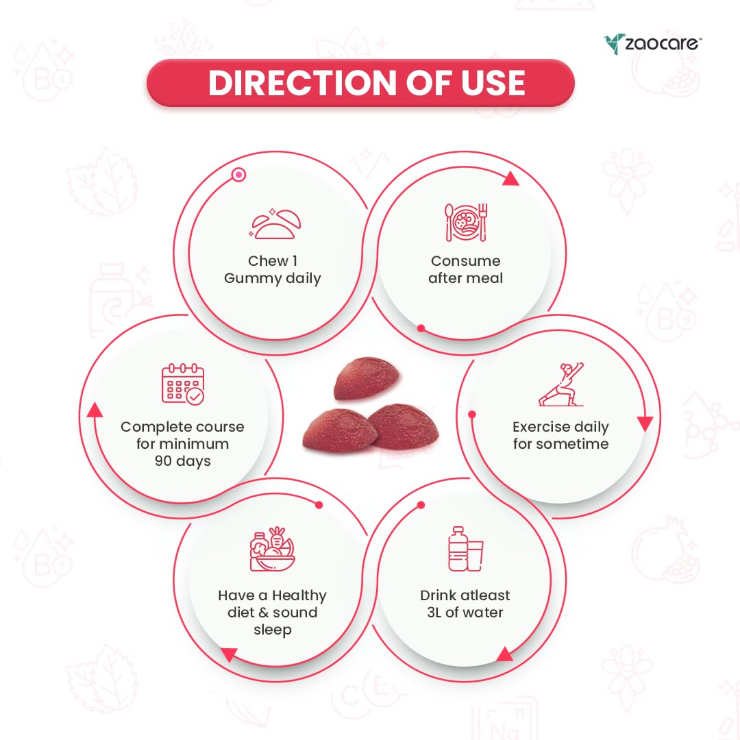 Zaocare Daily Detox Gummies are enriched with rich source of good bacteria like Vitamin B12, Vitamin B9, Organic Pomegranates, Organic Beetroot which provide benefits like: