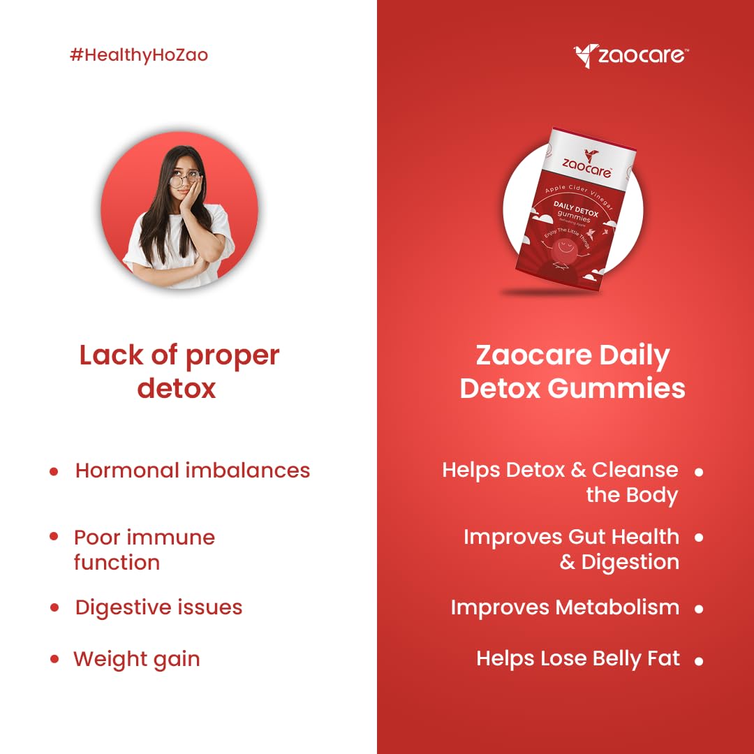 Zaocare Daily Detox Gummies : Apple Cider Vinegar (ACV) Gummies for weight management & Metabolism boost