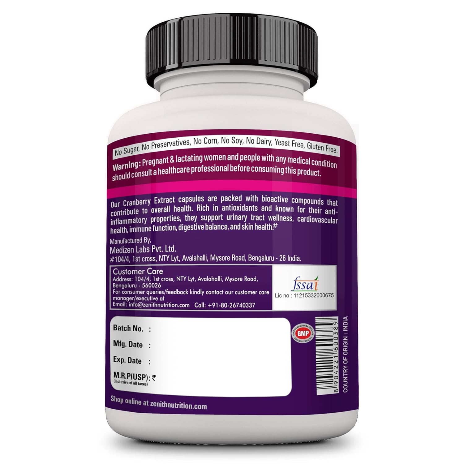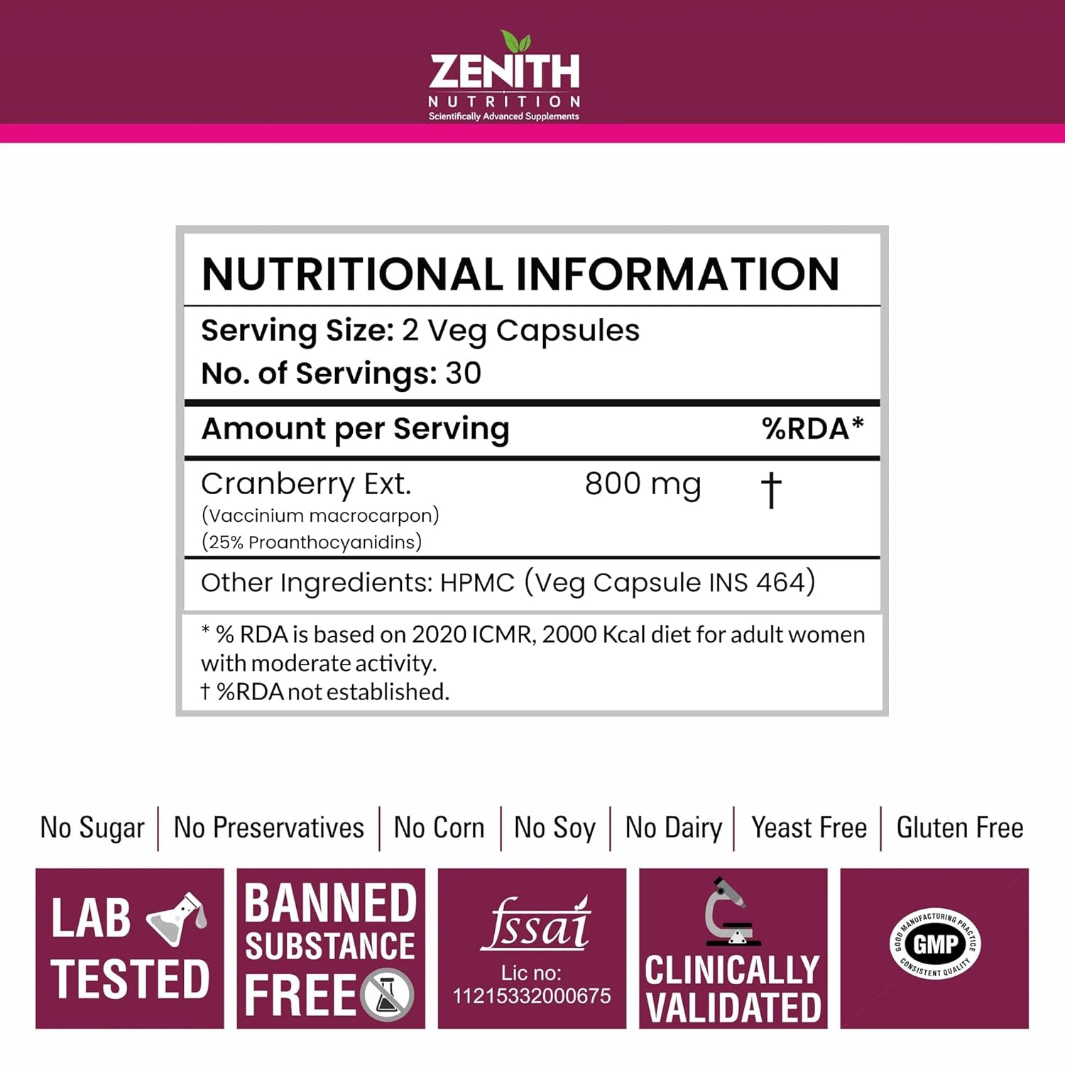 Zenith Nutrition Cranberry 400 mg – 60 Veg Capsules (60 Capsules) | Lab tested