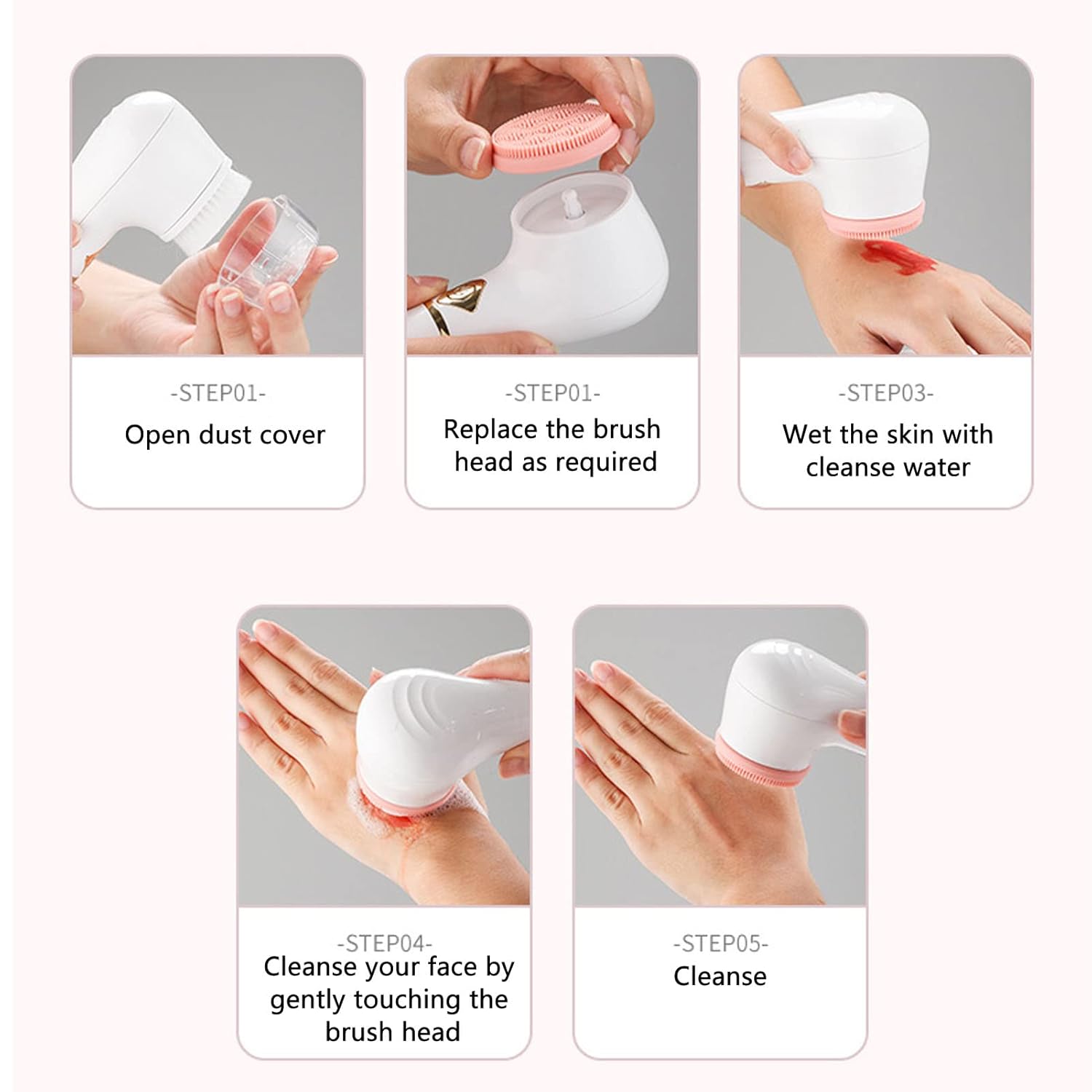 Dust Cover: Electric face brush with a cover, effectively avoid dust from entering, after use, cover the dust cover fot more sanitary.